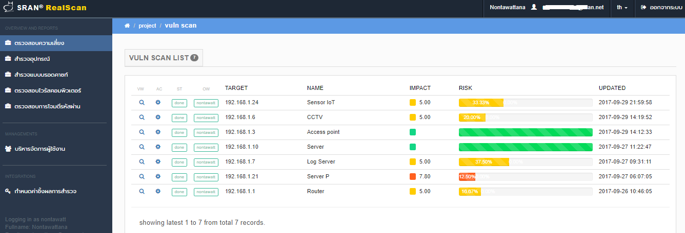 การประเมินความเสี่ยงก็ไม่ต่างอะไรกับการตรวจสุขภาพของคนเรา ในองค์กรระดับ Enterprise เท่านั้นถึงจะมีการทำ Vulnerability Management คือการค้นหาความเสี่ยงอย่างต่อเนื่องเพื่อปรับปรุงความมั่นคงปลอดภัยข้อมูลอย่างต่อเนื่อง แต่ขณะเดียวกันองค์กรขนาดกลางและเล็กนั้นแทบไม่มีโอกาสได้ทำเนื่องจากค่าใช้จ่ายในการประเมินความเสี่ยงระบบนั้นมีค่าที่สูงและเพื่อเป็นการลดค่าใช้จ่ายการประเมินความเสี่ยง จำเป็นต้องมีผู้เชี่ยวชาญเฉพาะด้านมาตรวจสอบระบบให้ เราจึงทำบริการที่ชื่อว่า RealScan โดยมีเทคโนโลยี AI ( Artificial Intelligence) โดยใช้ Machine Learning ในการวิเคราะห์ความเสี่ยง และกำหนดค่าคะแนน (Score) ความเสี่ยงที่มีผลกระทบต่อองค์กร และเพื่อการปรับปรุงเพื่อรอดพ้นจากภัยคุกคามที่เกิดขี้นในอนาคต