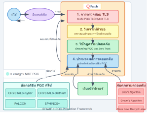 คือโซลูชันที่ช่วยให้องค์กร รองรับ PQC (Post Quantum Cryptography) โดยไม่ส่งผลกระทบต่อระบบเดิม และองค์กรที่ไม่สามารถอัพเกรดเป็น PQC ได้ การทำงานของ Q-Patch เป็นแบบ Virtual patch security เพื่อให้องค์กรรองรับการเข้ารหัส PQC และป้องกันการโจมตีจากถอดรหัสจาก Quantum Computing ได้