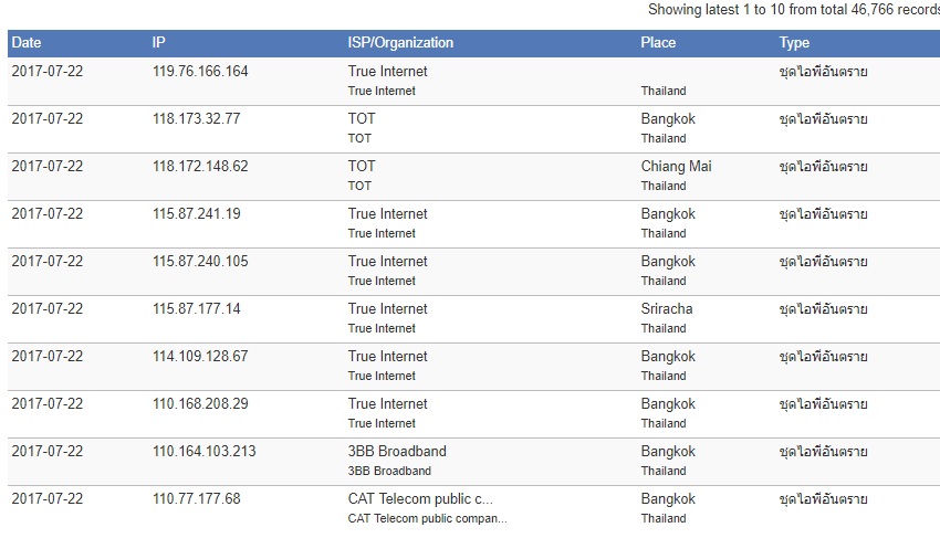 เมื่อทำการวิเคราะห์ข้อมูลจากค่าไอพีแอดเดรสที่ขึ้นบัญชีดำในประเทศ กับพบว่า
