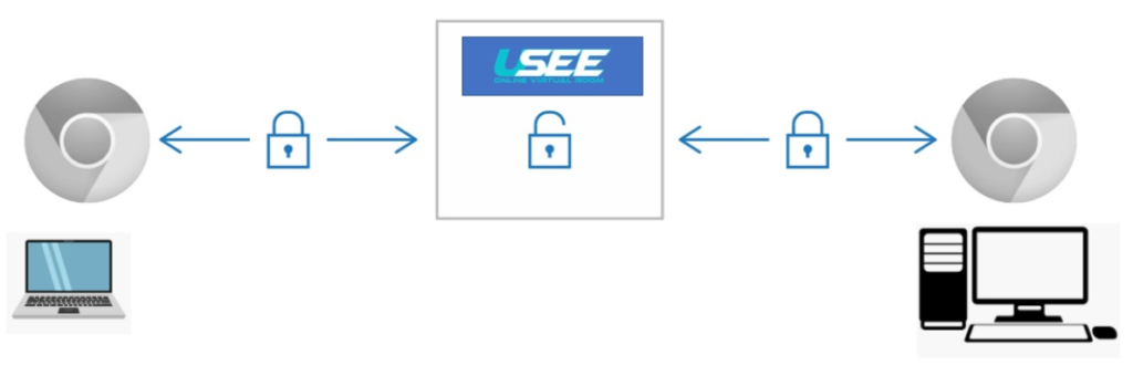 ในการประชุมทางไกลผ่านอินเทอร์เน็ต Usee สามารถเข้าใช้งานได้ทั้งบนหน้าบราวเซอร์เว็บไซต์ และดาวน์โหลดแอปพลิเคชันไปใช้บนมือถือได้ ซึ่งแอปพลิเคชันการประชุมนี้ ทำงานด้วยระบบ End-to-End Encryption ฃ - Data Localization